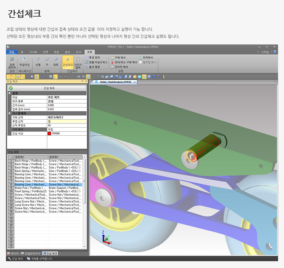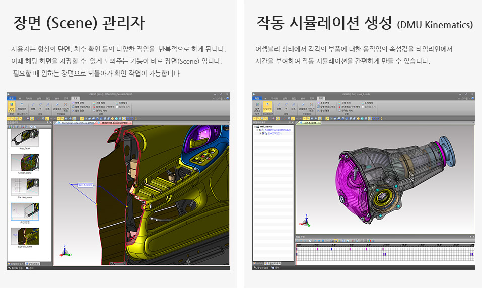 OPR3D Pro 제품은 조립된 제품의 분해 , 간섭체크 , 언더컷 확인 등의 추가 기능을 포함한 제품 입니다.